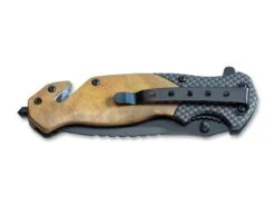 Dieses mächtige und schwere Messer ist für den Ernstfall eine gute Wahl. Die Klinge aus 440er Stahl, der große Griff aus Aluminium mit Griptape-Einlagen, der integrierte Gurtschneider und der Glasbrecher machen es zu einem wahren Lebensretter. Die Klinge wird per Linerlock gesichert. Durch den Clip ist das Messer stets griffbereit.