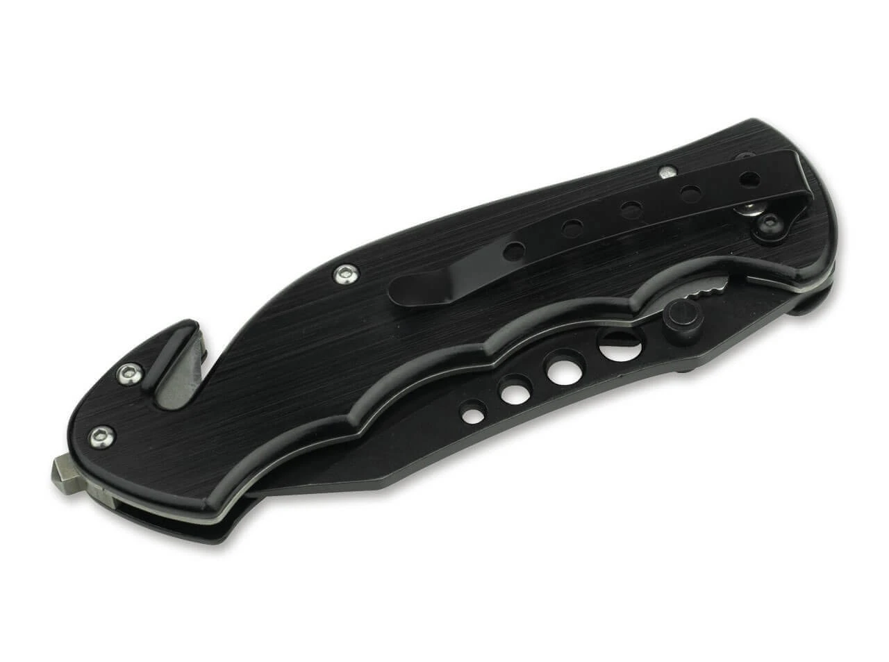 Das Magnum Special Forces ist ein funktionales Rettungsmesser, das den weltbekannten Elite-Einheiten der amerikanischen Streitkräfte gewidmet ist. Der schwarz beschichtete und leichtgewichtige Griff aus Aluminium trägt ein Emblem mit dem Wappen der Special Forces. Die rostfreie Klinge aus 440A wird per Daumenpin geöffnet und von einem stabilen Linerlock zuverlässig arretiert. Die Bohrungen verleihen der Klinge eine eigene Note und reduzieren zudem das Gewicht. Am Griffende befinden sich ein Glasbrecher und ein Gurtschneider, die das Messer für jede Notfallausrüstung prädestinieren. Mit praktischem Deep-Carry-Clip (Tip-down).