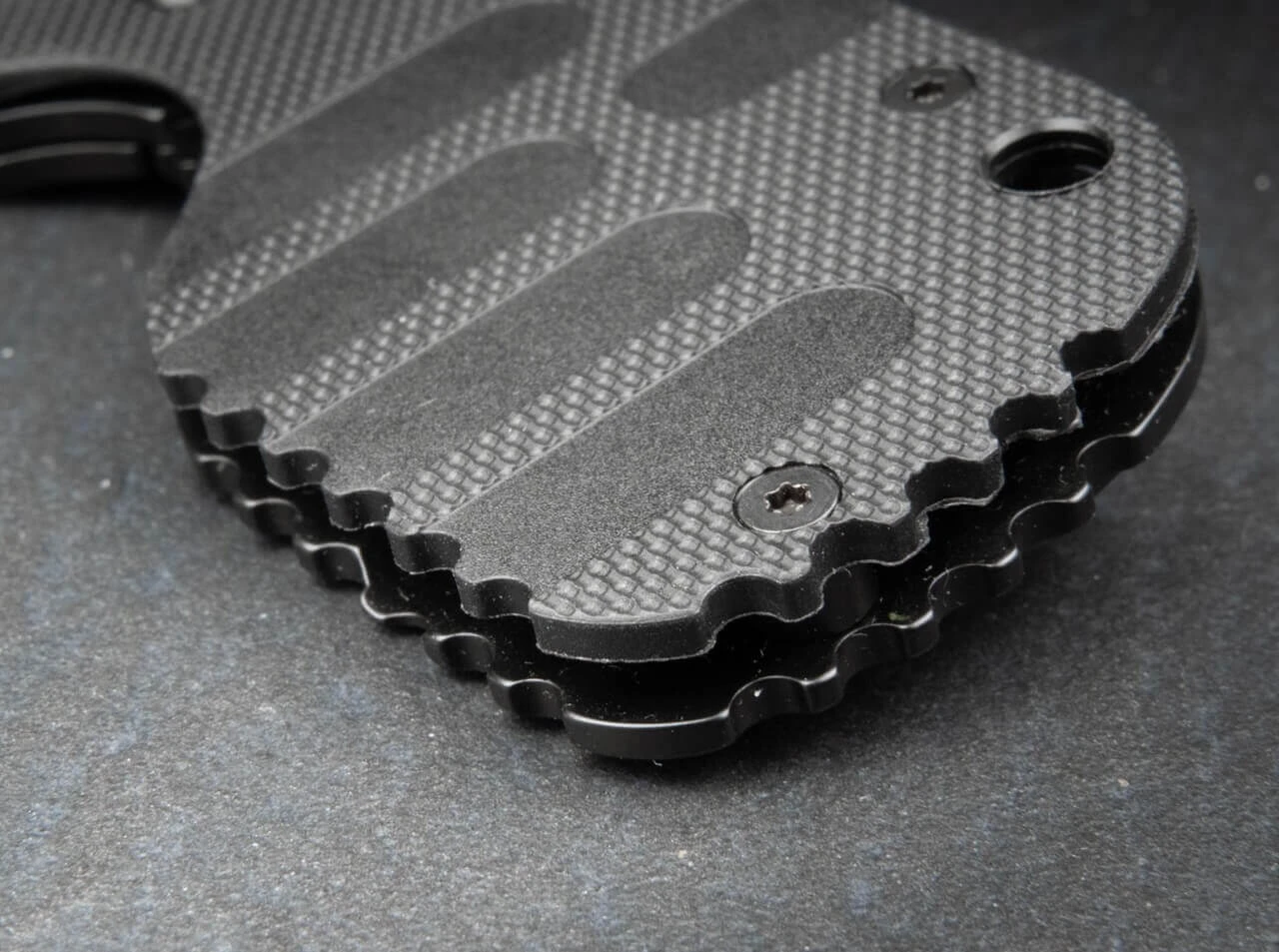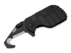 Das ultrakompakte Böker Plus Rescom basiert auf dem beliebten Böker Plus Subcom von Chad Los Banos, ist aber anders als das Ursprungsmodell mit einer vielseitigen Multifunktionsklinge ausgestattet. Die ungebrochene Beliebtheit des handlichen Rettungstools bei professionellen Einsatzkräften und Ersthelfern hat uns nun dazu veranlasst, diesen nützlichen Klassiker unseres Sortiments in einer modernisierten Version neu aufzulegen. Das Böker Plus Rescom 2.0 ist mit einer schwarz beschichteten Rettungsklinge aus D2 ausgestattet, die zahlreiche praktische Funktionen vereint und im Notfall Leben retten kann. Sie wird mithilfe des beidseitigen Daumenpins geöffnet und von der zwei Millimeter starken Stahlplatine des Framelocks sicher arretiert. Ein ausgeprägter Handschutz erhöht den Griffkomfort und verhindert ein Abrutschen in die Klinge. Die strukturierte Griffschale aus schwarzem Zytel ist mit dreidimensionalen Fräsungen versehen und liegt dank dieser Oberflächenstruktur, der ergonomischen Formgebung und Riffelungen im Bereich der Daumenauflage auch bei Nässe stets sicher in der Hand. Mit Fangriemenöse und umsetzbarem Clip (Tip-up/Tip-down).