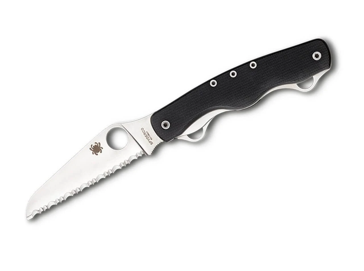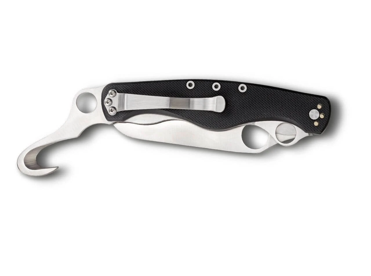 Das Spyderco ClipiTool Rescue verbindet die Vielseitigkeit eines klassischen Mehrklingenmessers mit dem Komfort eines modernen Einhandmessers und ist dabei für Rettungszwecke optimiert. Die Sheepfoot-Klinge mit stumpfer Spitze ist vollständig mit dem bissigen Spyderedge-Wellenschliff versehen und verriegelt per Linerlock. Die Hakenklinge eignet sich hervorragend zum Entfernen von Kleidung und Stiefeln bei Verletzten und verriegelt ebenfalls per Liner Lock. Der zusätzliche Schraubendreher wird per Slipjoint offengehalten. Ein umsetzbarer Clip am G10-Griff ermöglicht es, das ClipiTool rechts Tip-up oder Tip-down zu tragen. Alle Klingen gefertigt aus 8Cr13MoV.