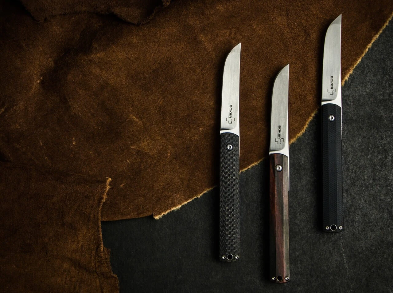 Die schlanke Bauweise und die leichtgewichtige Konstruktion des Böker Plus Wasabi ergeben zusammen mit dem geradlinigen Design und der klassisch-japanischen Klinge ein elegantes Messer für den Alltag. Die kugelgelagerte Klinge öffnet per Frontflipper und wird als Slipjoint von einem eigenen Detent Ball offengehalten. Für die Klinge kommt der bewährte 440C zum Einsatz. Griff mit Edelstahlplatinen und Beschalung aus schwarzem G10. Mit gefrästem Clip und hochwertigem Nylon-Etui zur Aufbewahrung.